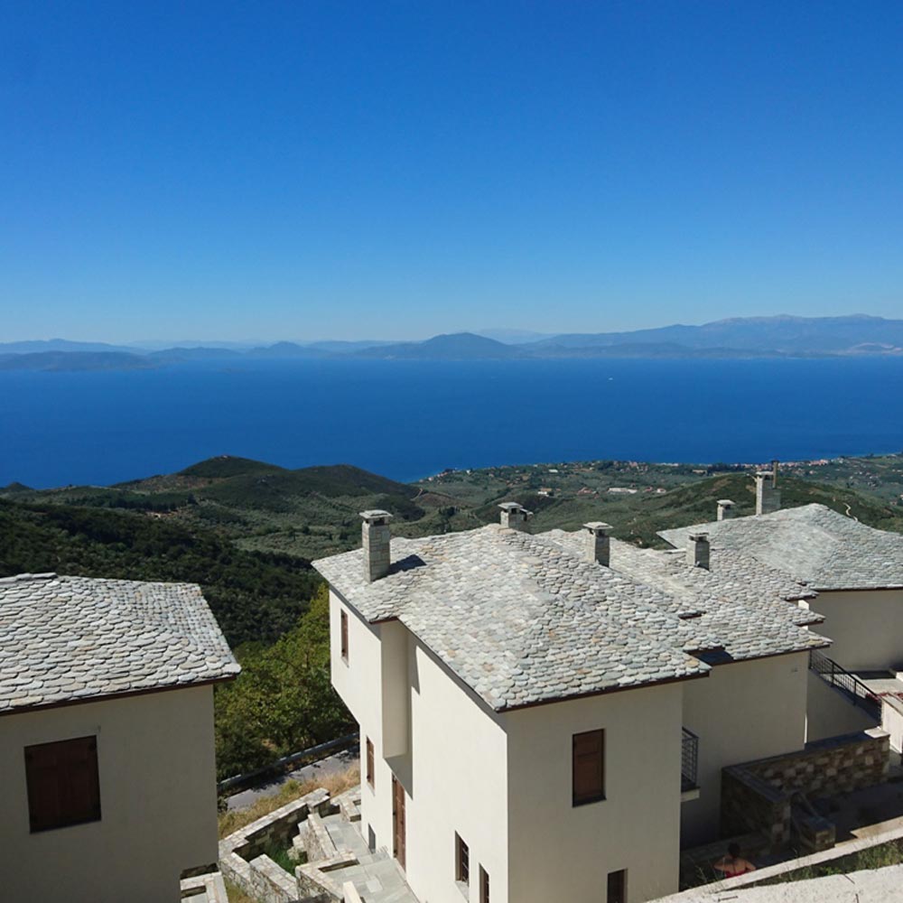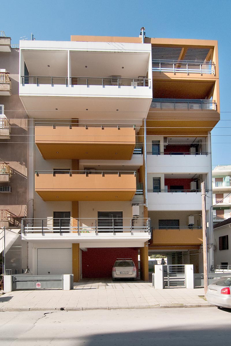 Σε ένα μεσαίο οικόπεδο, με πρόσωπο στην οδό Καραθάνου, σε πολύ κοντινή απόσταση από το εμπορικό κέντρο της πόλης της Λάρισας, μελετήθηκε και κατασκευάστηκε μία αστική πολυκατοικία πέντε ορόφων, με έξι διαμερίσματα. Επιθυμία των μελετητών ήταν η δημιουργία μιας ‘’πολυκατοικίας’’, της οποίας με τα διαμερίσματα να έχουν μεταξύ τους μια αισθητική ογκομετρική διαφοροποίηση. Επιφάνειες και όγκοι προβάλλονται ή υποχωρούν από τον βασικό κτιριακό όγκο συνθέτοντας άρτια λειτουργικές κατόψεις και μια ενδιαφέρουσα ογκοπλαστικά όψη.